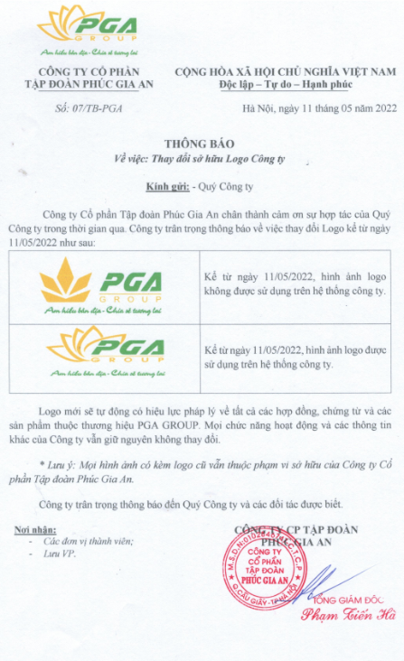 Công ty Cổ phần Tập đoàn Phúc Gia An trân trọng thông báo đến Quý Công ty về việc ” Thay đổi sở hữu Logo” của Công ty như sau:
